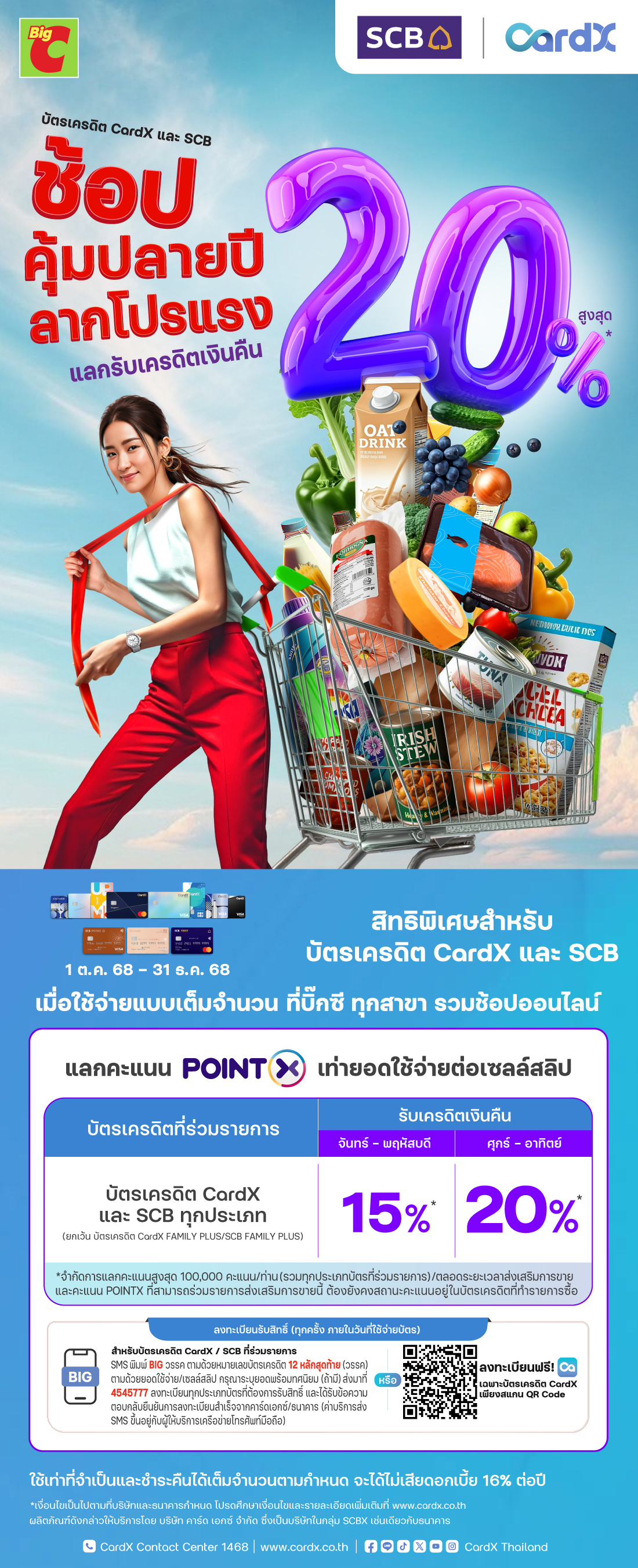 ช้อปคุ้มปลายปีที่บิ๊กซีด้วยบัตรเครดิต SCB CardX แลกรับเครดิตเงินคืนสูงสุด 20%