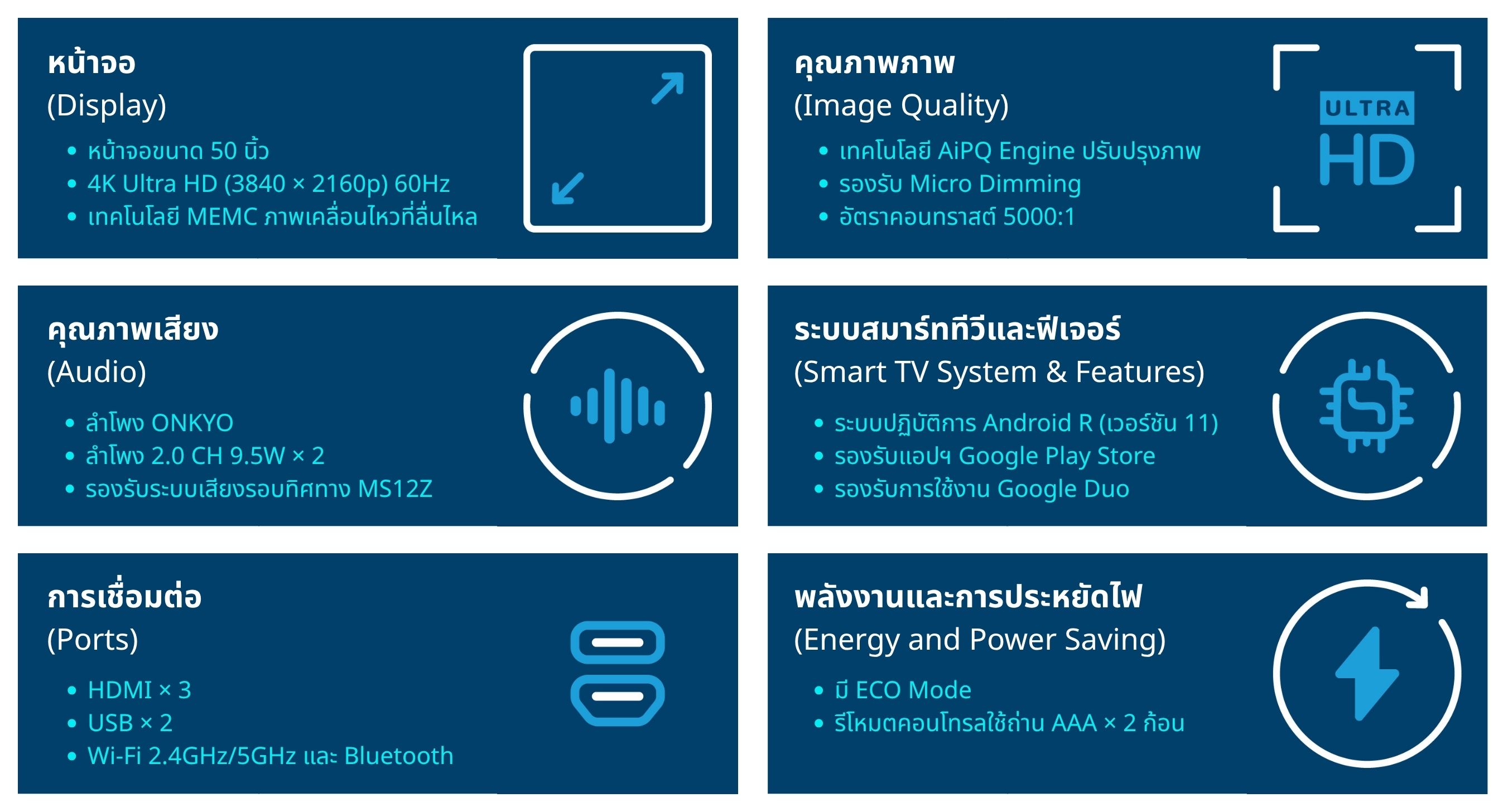 • ขนาดหน้าจอ 50 นิ้ว แบบ D-LED QLED Android TV